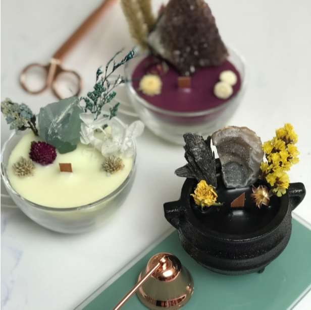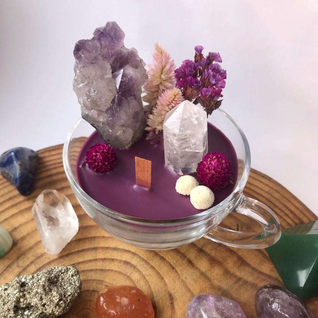 VELAS COM CRISTAIS E FLORES E ELEMENTOS DESIDRATADOS. ENTENDA A TÉCNICA E MANEJOS PARA ESSA VELA TÃO ESPECIAL
